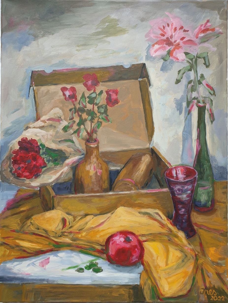 Im Stillleben kann man sehr gut die Grundlagen der Perspektive und Konstruktion und den Umgang mit Licht, Schatten und Linien umsetzen. Es ist die Konstruktion der Objekte zueinander, Geometrische Formen, Verbindung von Form und Farbe, die Leere und Fülle.
