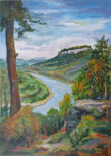 Mein Thema war Landschaft am Fluss.